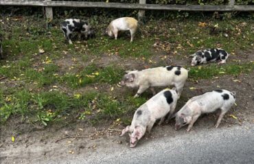 Sunday Club RideA middling turnout this week as 13 or so club-chums made the start line in overcast conditions. I had made a fairly late change of route, for which I paid by being quizzed about it by each and every rider in turn upon their arrival. A couple of the less observant (and late) riders paid for it by cycling the wrong route. The ride itself passed without much incident despite some lunatic driving by one BMW (surprise) driver, lots of cyclists doing the Gridiron event and a herd of galloping horses that ran right across the rd right to left, and then as we took a left hand turn passed again right to left. We saw some cute pigs, too which were duly photographed. |